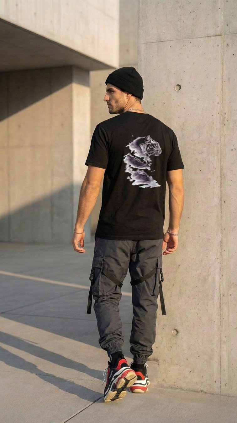Regular fit black T-shirt for men in 200 GSM cotton worn for casual and streetwear styleVAMO CoreFlex™ Regular Fit Black T-Shirt | 200 GSM Premium Cotton